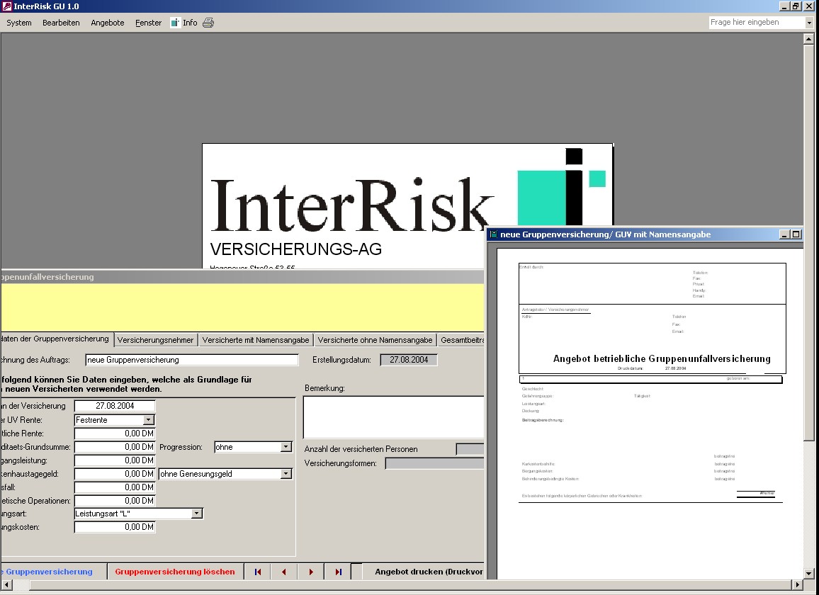 Dieses Datenbanksystem wurde für die Berechung diverser Tarife einer Versicherung entwickelt. Es handelt sich hierbei um ein nach Kundenvorgaben entworfenes System.